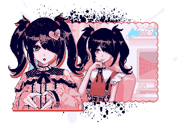 I love Scott Pilgrim, PASWG, Needy Streamer Overload, Love Angel Syndrome, Gachiakuta, TADC and other stuff. I'm into really edgy fashion but I also have a sweet spot for cute stuff, especially cute accessories. I'm also really into menhera, specifically the original menhera which revolves around recovery.